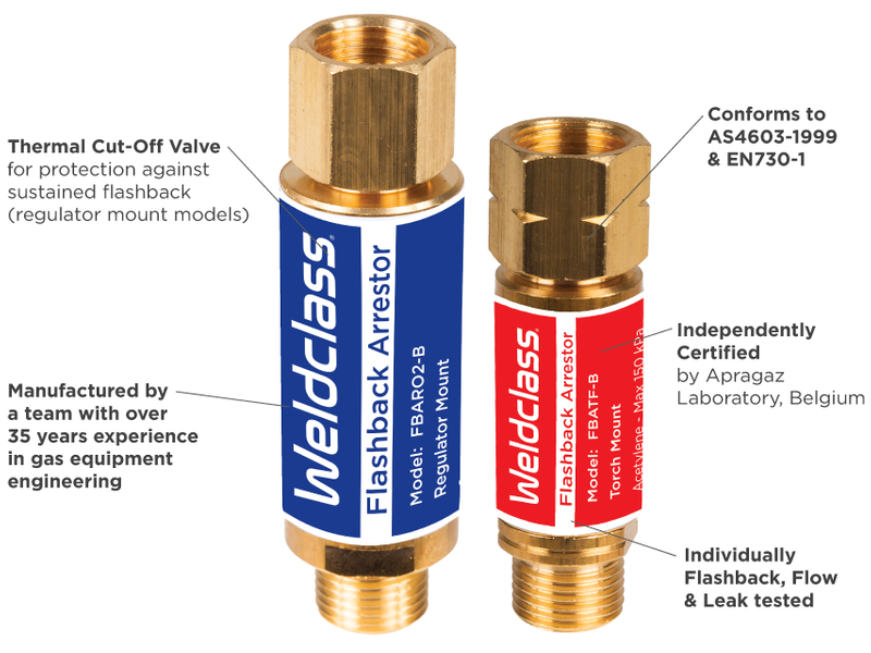 - Unlike some other brands/models, Weldclass flashback arrestors cover both low/standard and medium/mid flow applications in one model