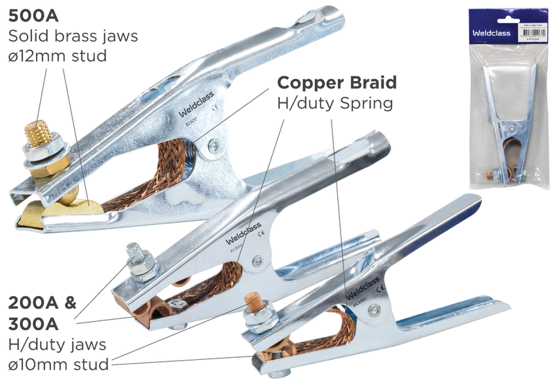 Weldclass standard series alligator-style earth / ground clamps.