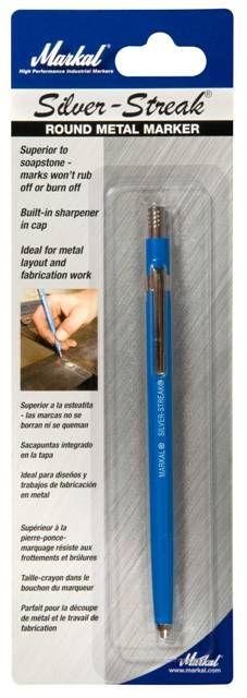 Clutch pencil style marker, specially designed for welders. Silver Streak marker pens won't rub or burn off & remain visible when cutting or welding. Ideal for mild steel & most metals.