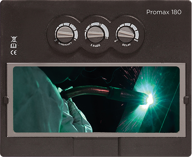 Exceptional value, no quality shortcuts and a leading 7-year warranty offer. The PROMAX 180 electronic welding helmet is designed for occasional MIG & Stick Welding. Controls include Variable Shade 9-13, Sensitivity & Delay Adjustments. Designed & built to same demanding standard as our higher-end models. Comfortable, very lightweight & superior optics. Click on 'More Info' tab below for a full list of features, and find out what sets Promax helmets apart here.